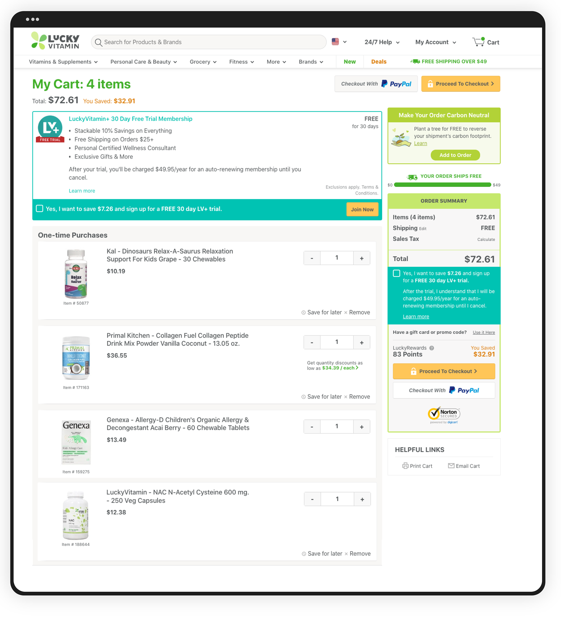LuckyVitamin is an e-commerce platform that provides customers with quality health & wellness products and professional advice from our in-house team of wellness experts.